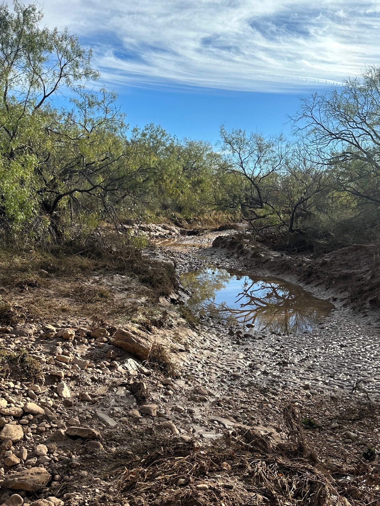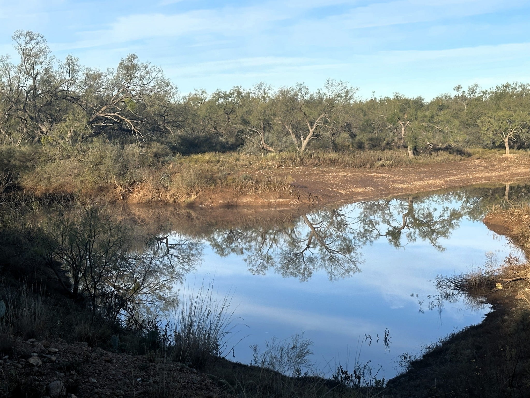 Most of the ranch is heavy cover with open grass land surrounding the property. Some large mesquites remain with ample brush for wildlife to thrive. Wildcat Creek enters property from the south and has been dammed up to create a large stock tank. The creek extends the remaining distance through property providing an excellent wildlife corridor and cover for game animals. The flats provide deeper soils and great grass and forb production. The two open areas add up to approximately 120 acres of grass land.