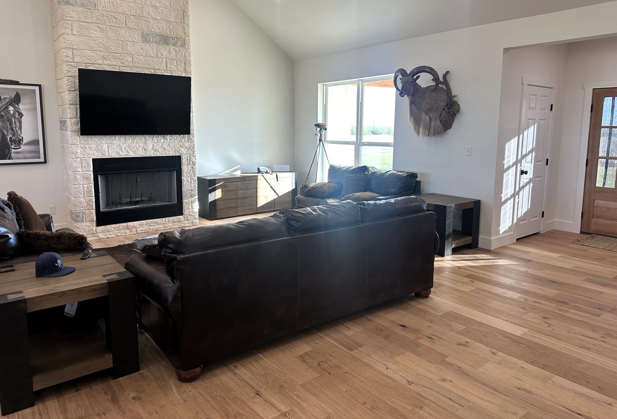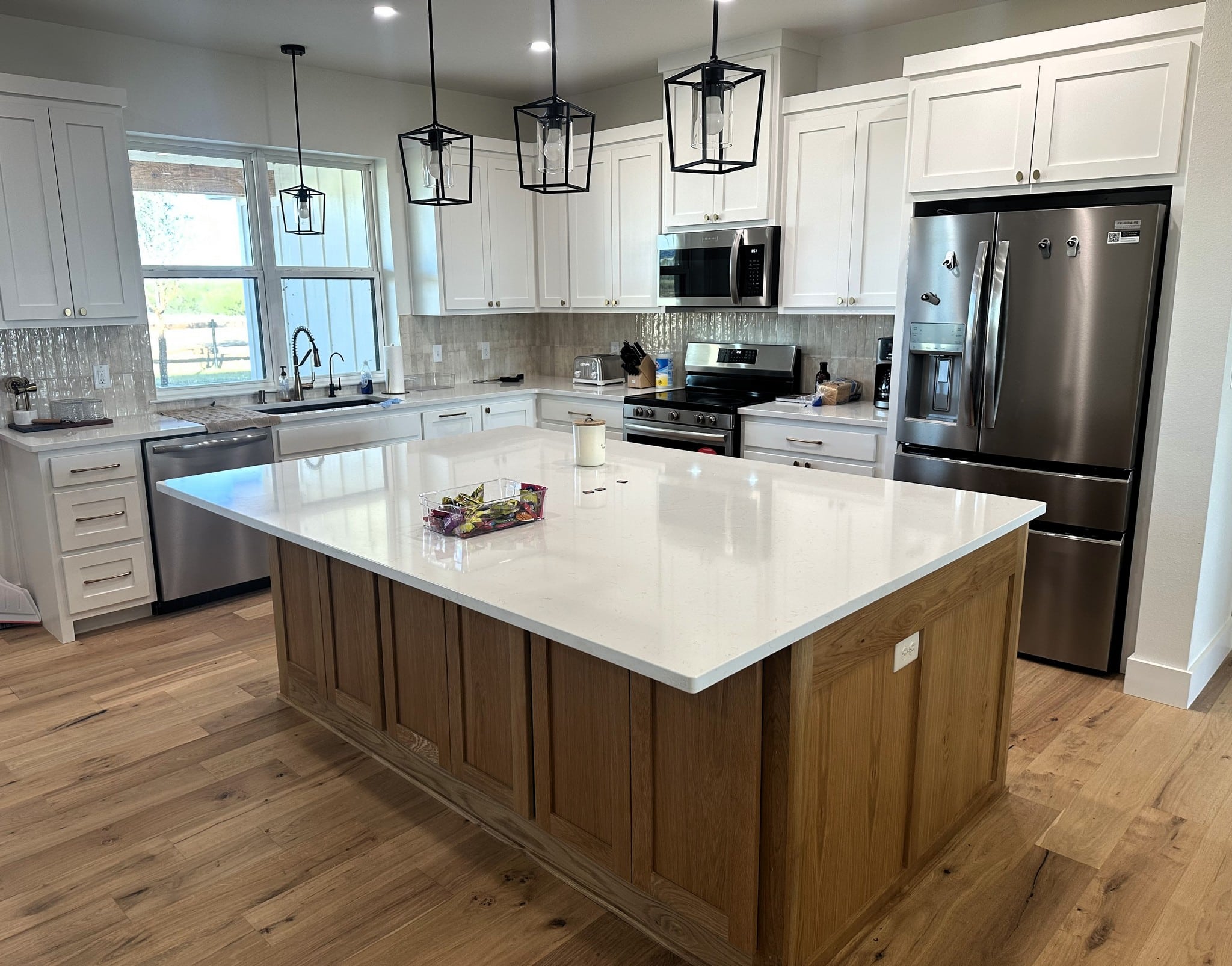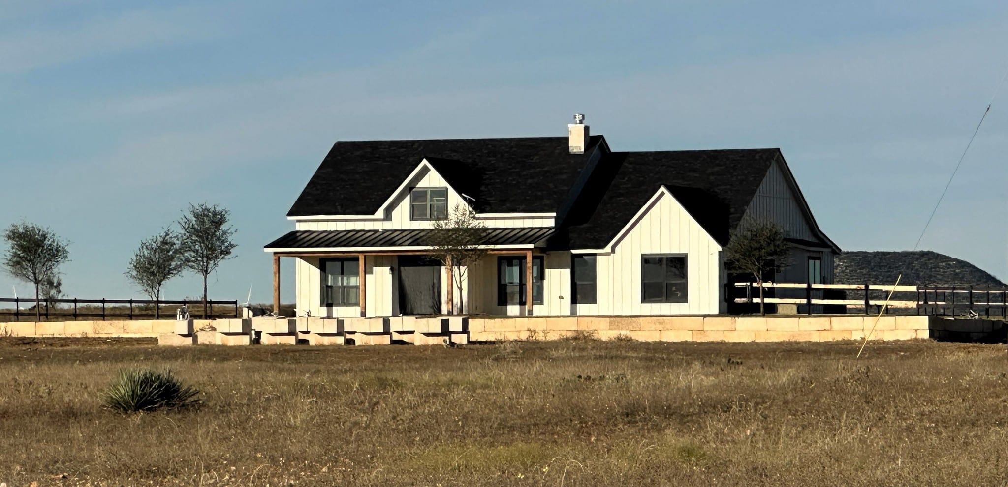 A new custom built (2025) home is located toward the back (southside) of property. 3 bedrooms and 2 bathrooms with a large utility room and a 2 car garage.